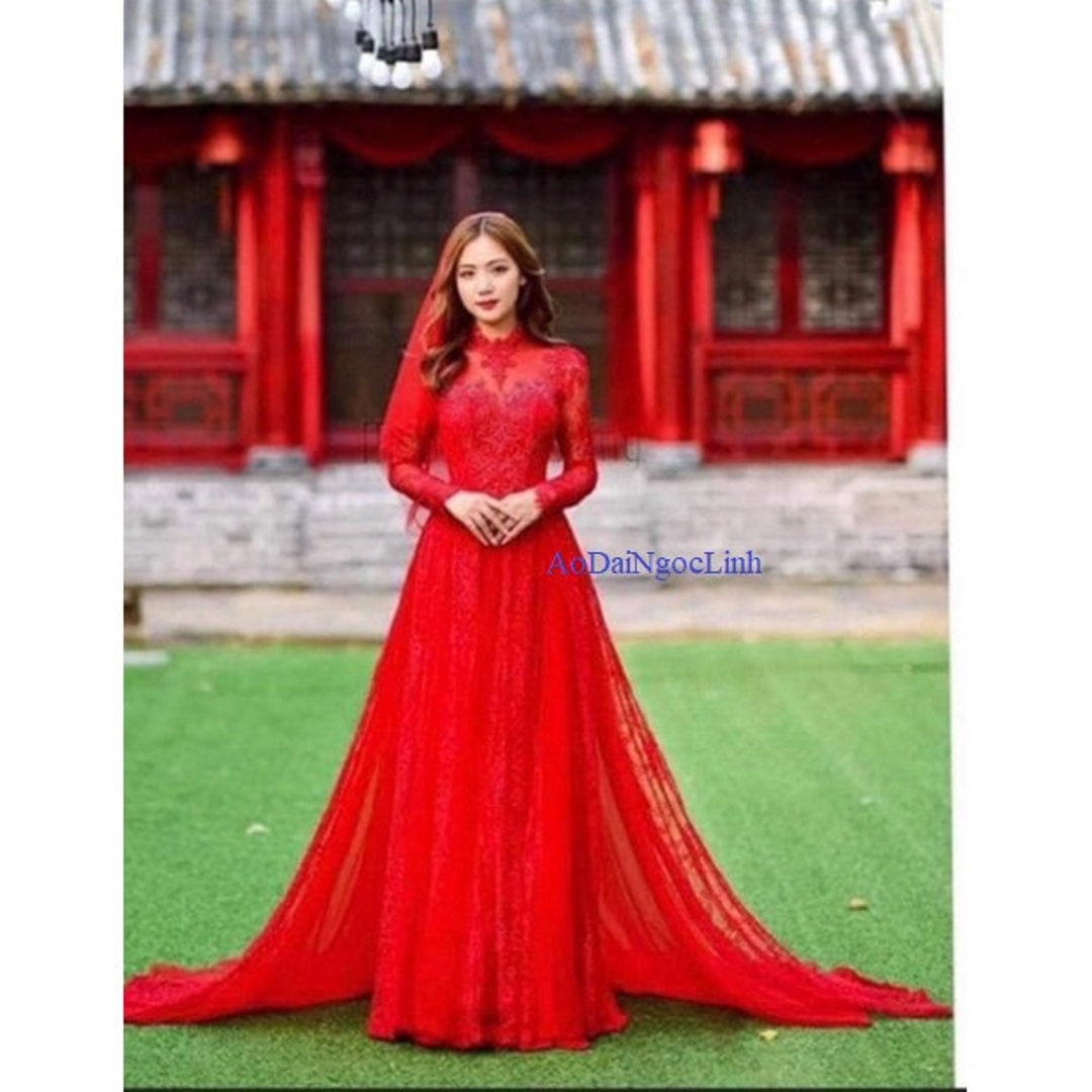 Pre-make Vietnamese Traditional Ao Dai, High Quality Red Ao Dai Von ...
