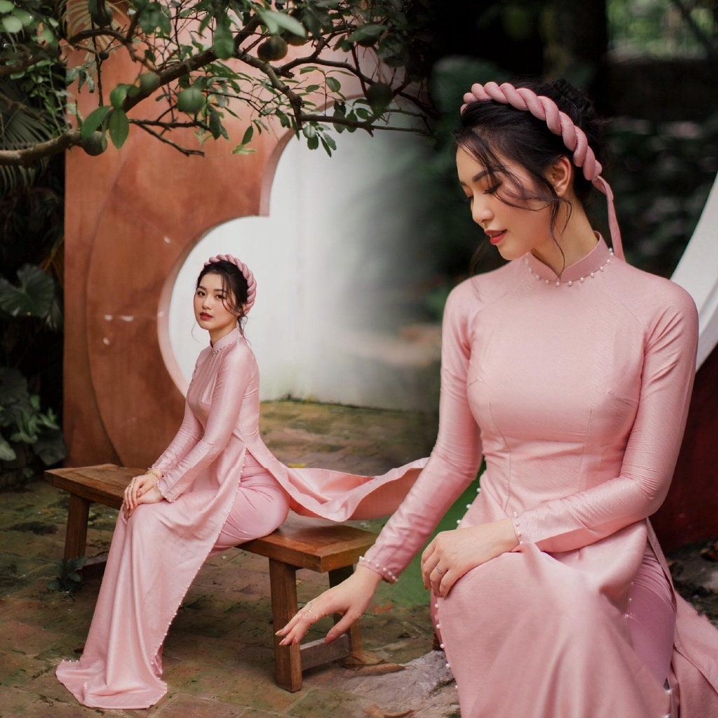 Pre-make Vietnamese Traditional Ao Dai Pink Luxury Wood Grain - Etsy