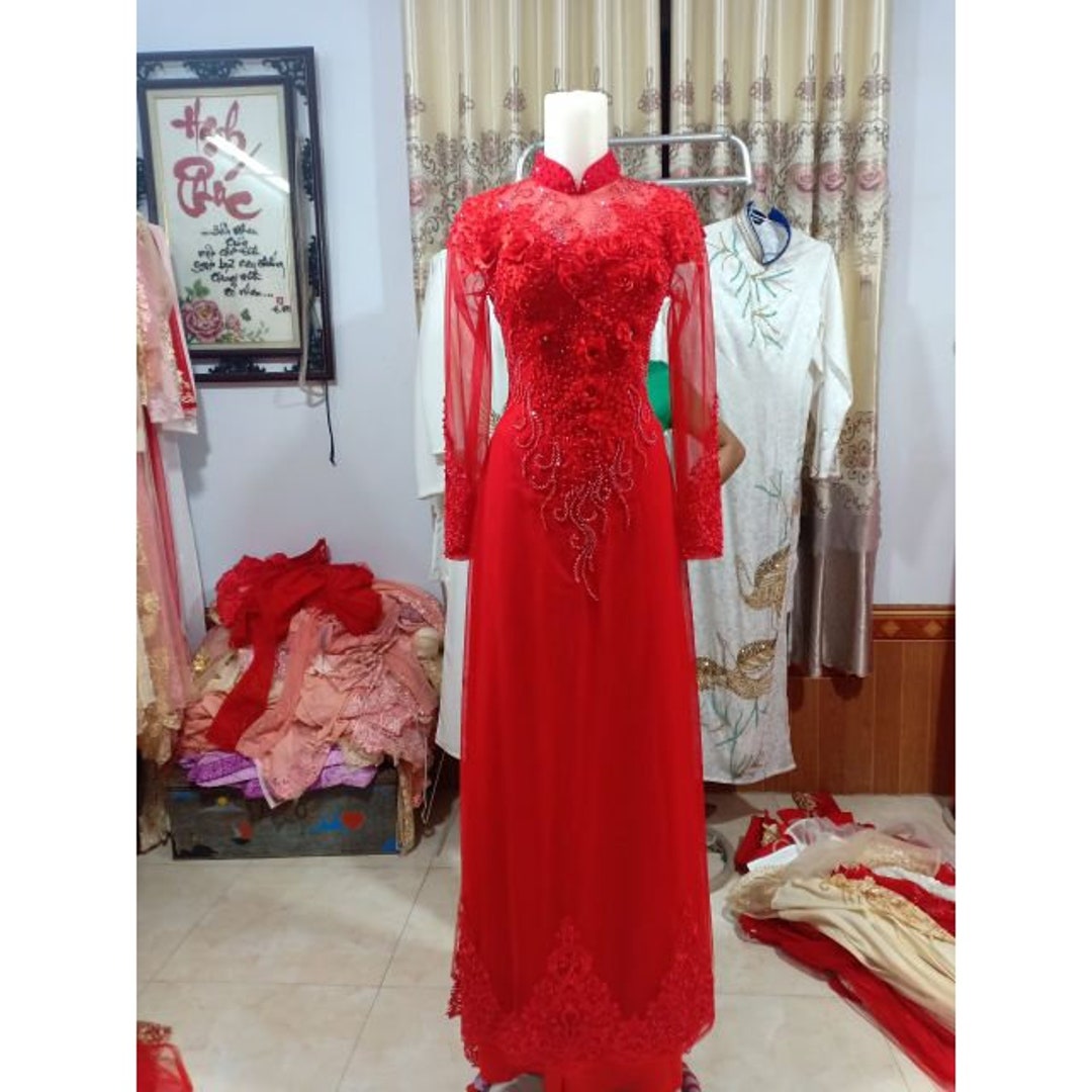 Pre-make Vietnamese Traditional Ao Dai, Red Ao Dai, Attach Flower, Bead ...