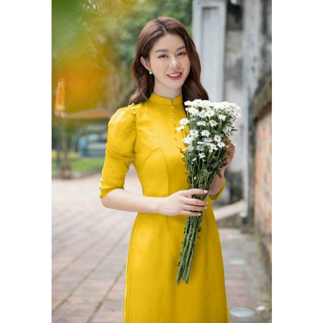 Pre-make Vietnamese Traditional Ao Dai, Beautiful Ready-made Yellow Ao ...