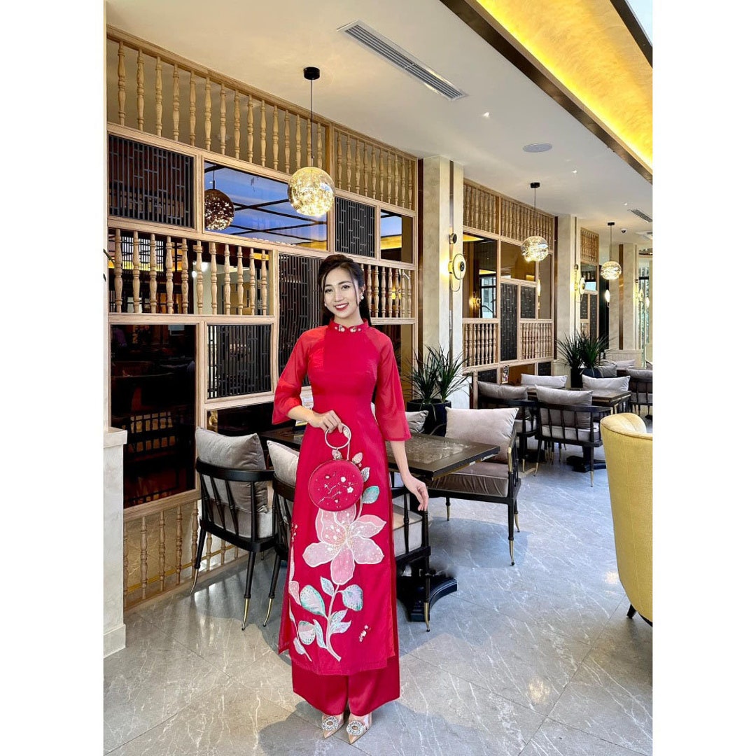 Pre-make Vietnamese Traditional Ao Dai, Red Ao Dai With With Pant for ...