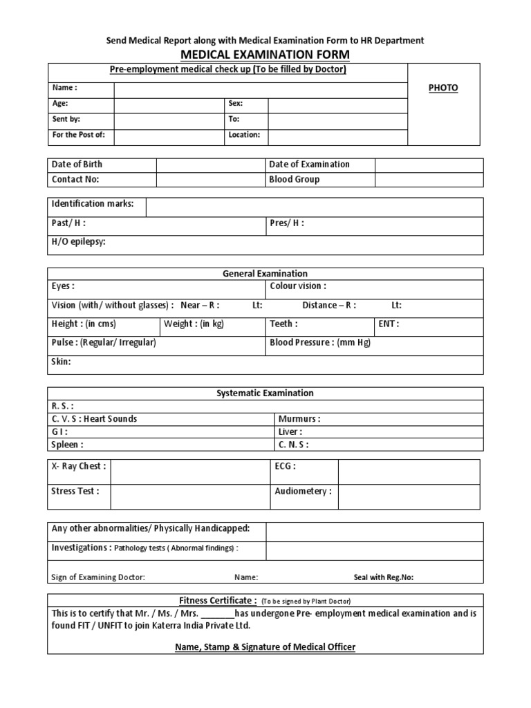 Pre-Employment Medical Examination Form | PDF | Physical Examination ...