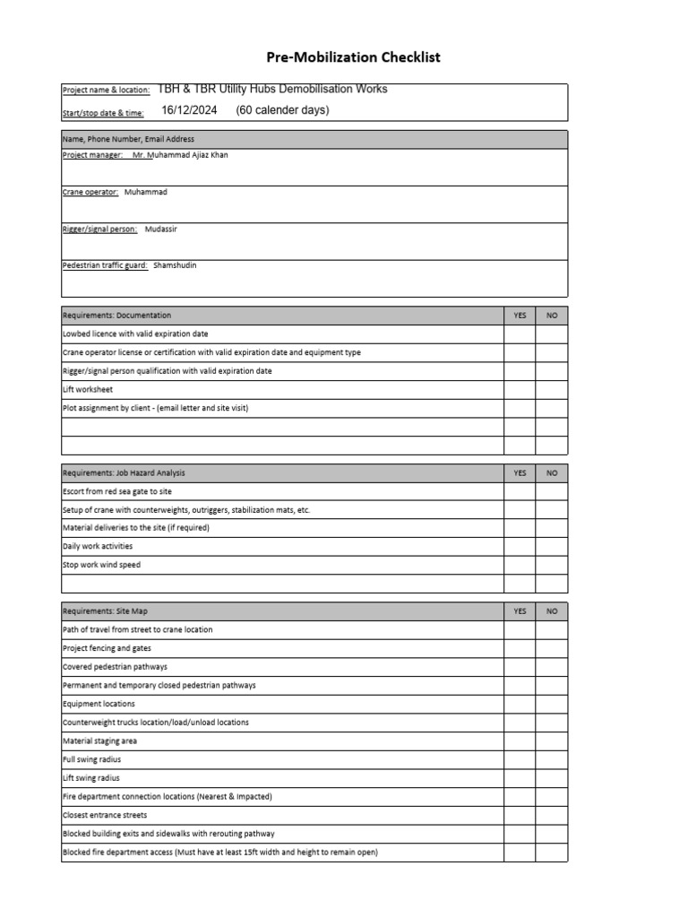 Contractors Pre-Mobilisation Checklist FIXXXX | PDF