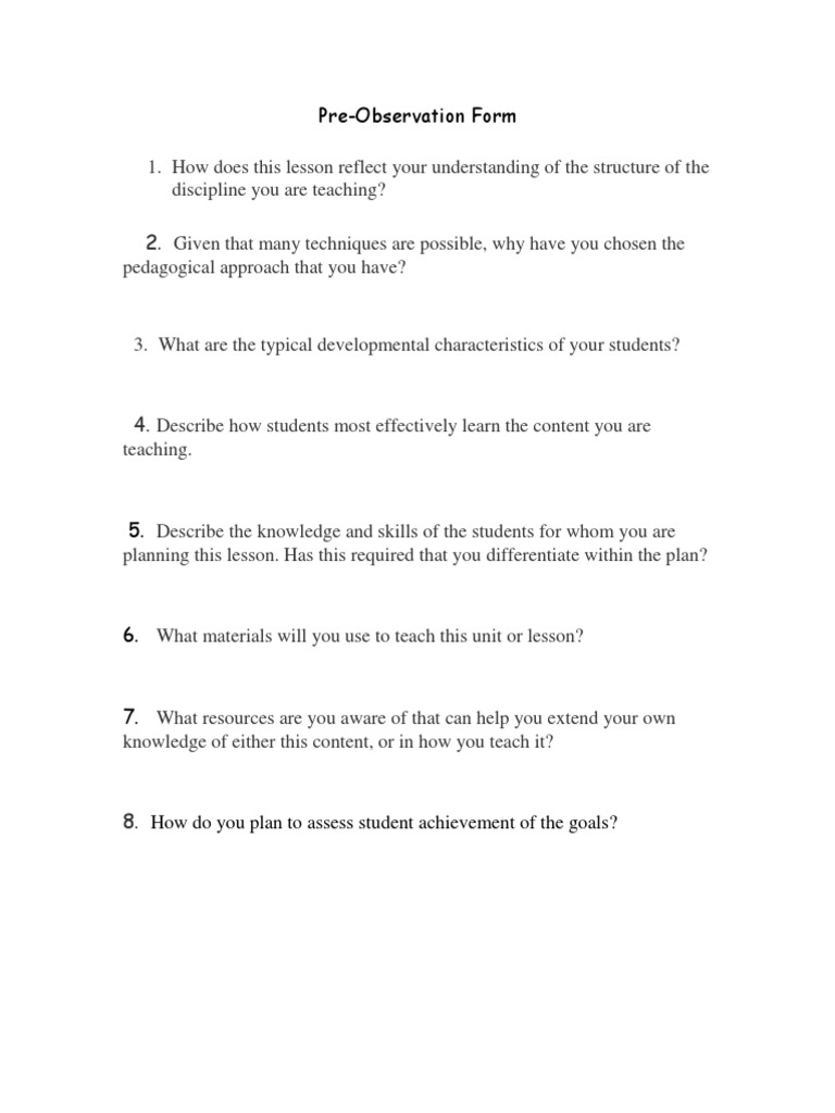 - Pre Observation Form - Template # 3 – This tool may be used in ...