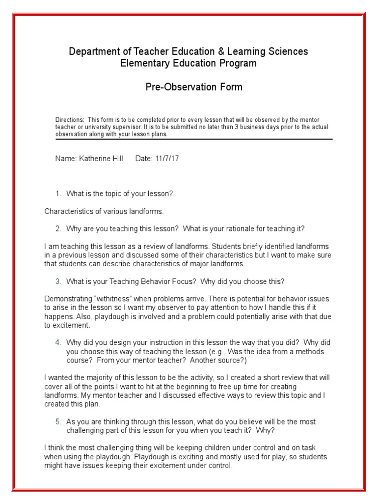 Pre-Service Teacher Lesson Observation :: Teacher Resources and ...
