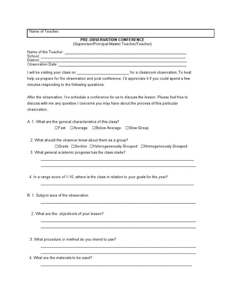 Teacher Pre Observation Conference Questions And Answers - Fill and ...