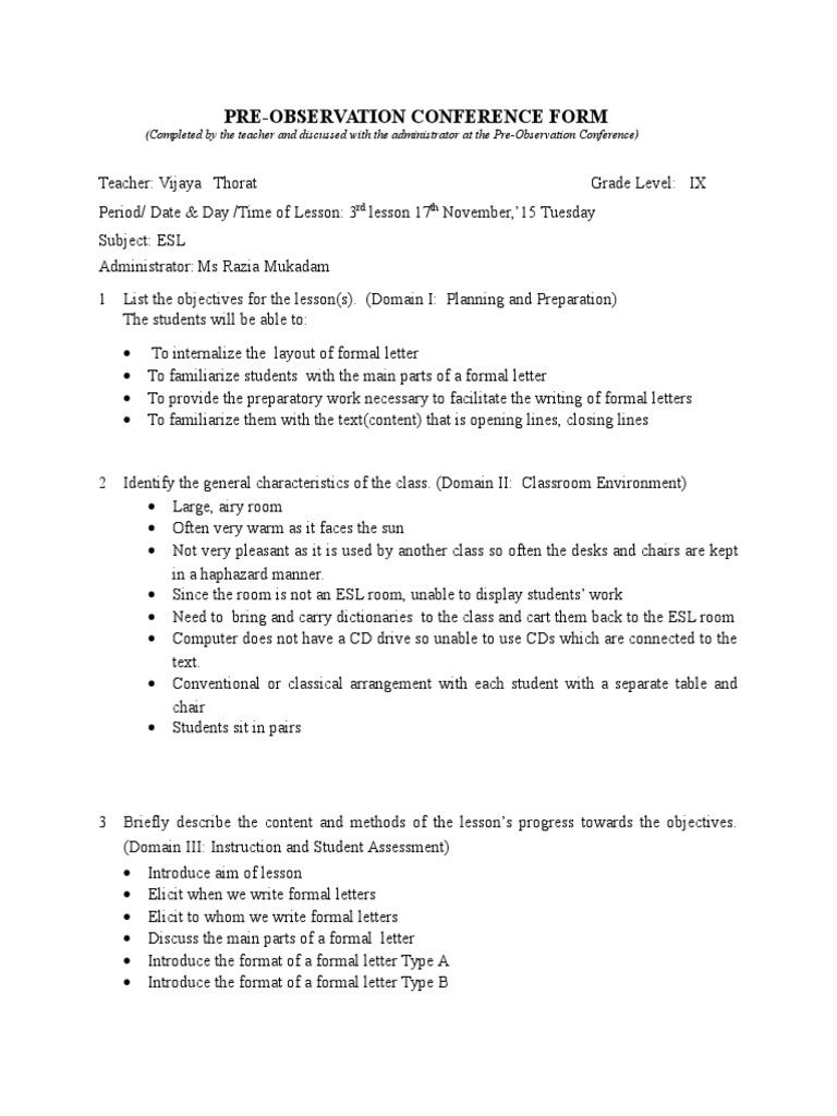 Pre Observation Conference Form | PDF