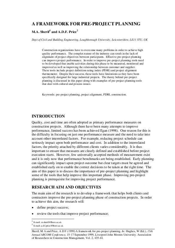 (PDF) A framework for pre-project Planning