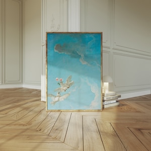 Romantic White Doves in Blue Sky – Vintage Style Cloud Art, Pre ...