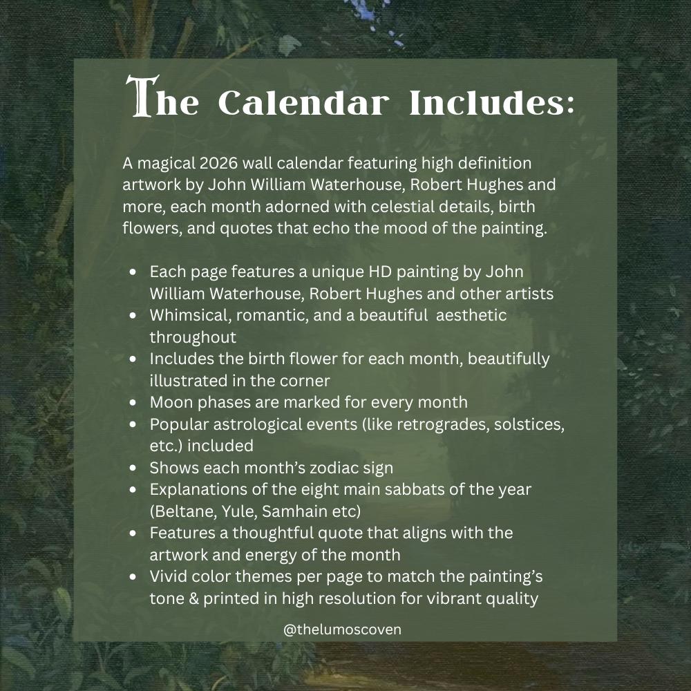 2026 Wall Calendar: Pre-raphaelite Art, Astrology & Moon Phases - Etsy