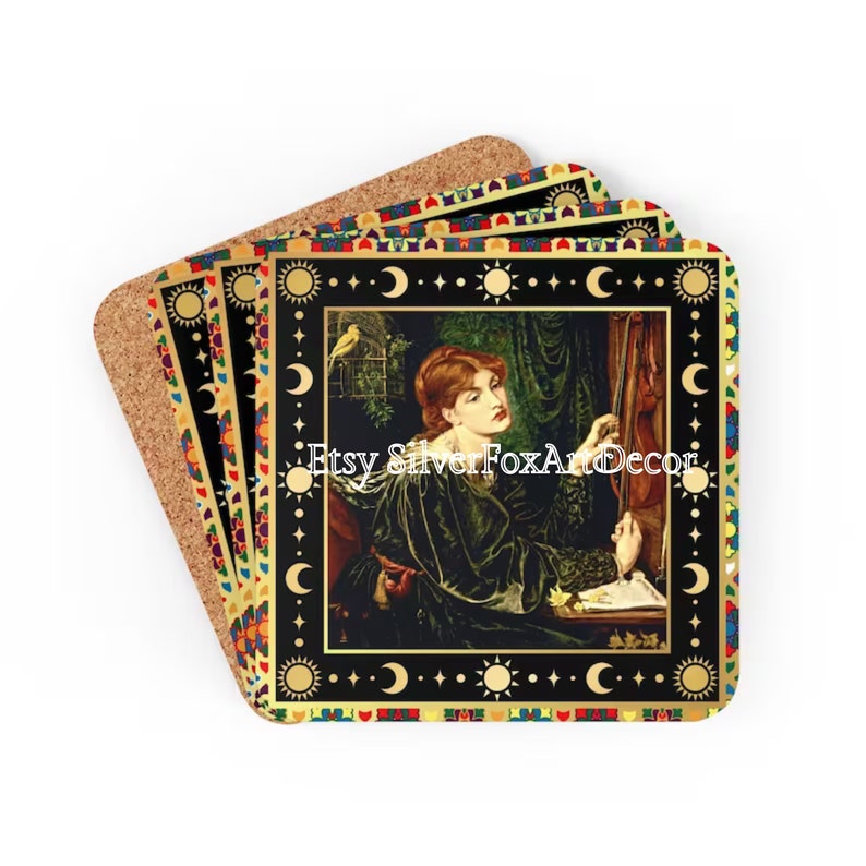 Set of 4 Classic Pre-raphaelite Art Bohemian Style Corkwood Coasters SF ...