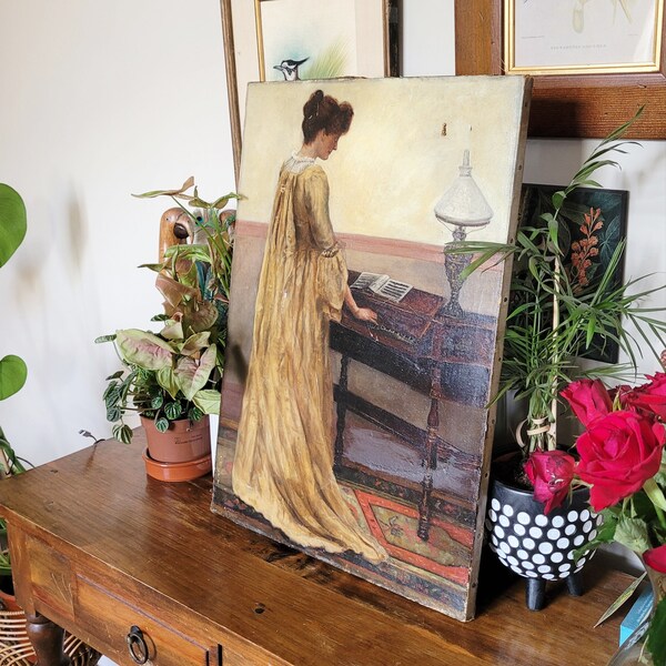 HAND PAINTED VICTORIAN Arts & Crafts Pre Raphaelite Portrait Of A Lady ...