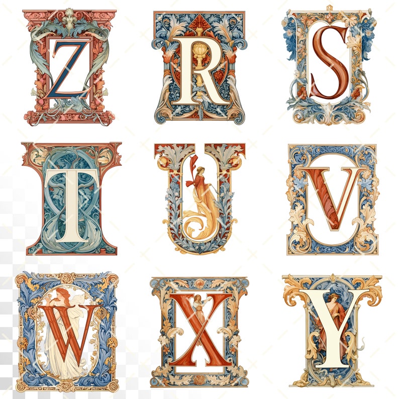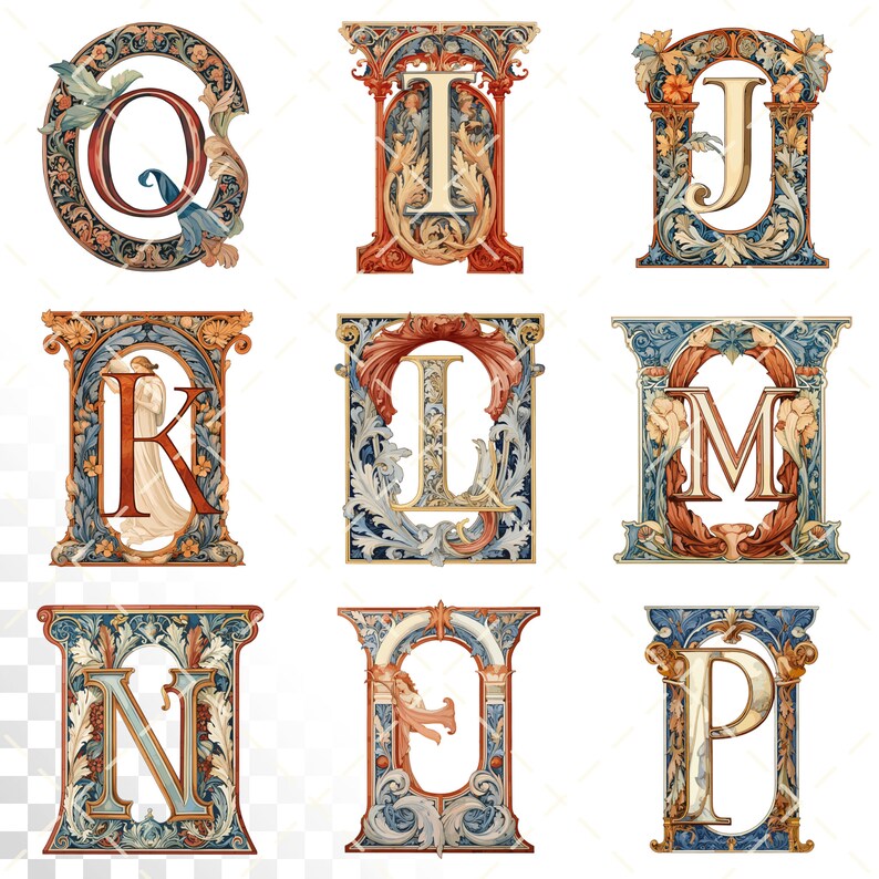Pre-raphaelite Alphabet | Transparent PNG SVG | Illuminated Manuscript ...
