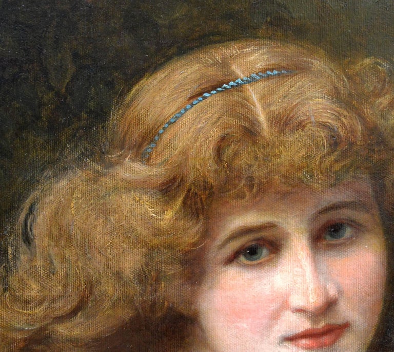 English Victorian Oil Painting Signed Pre-Raphaelite Maiden Portrait Art