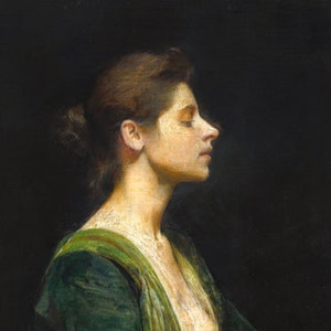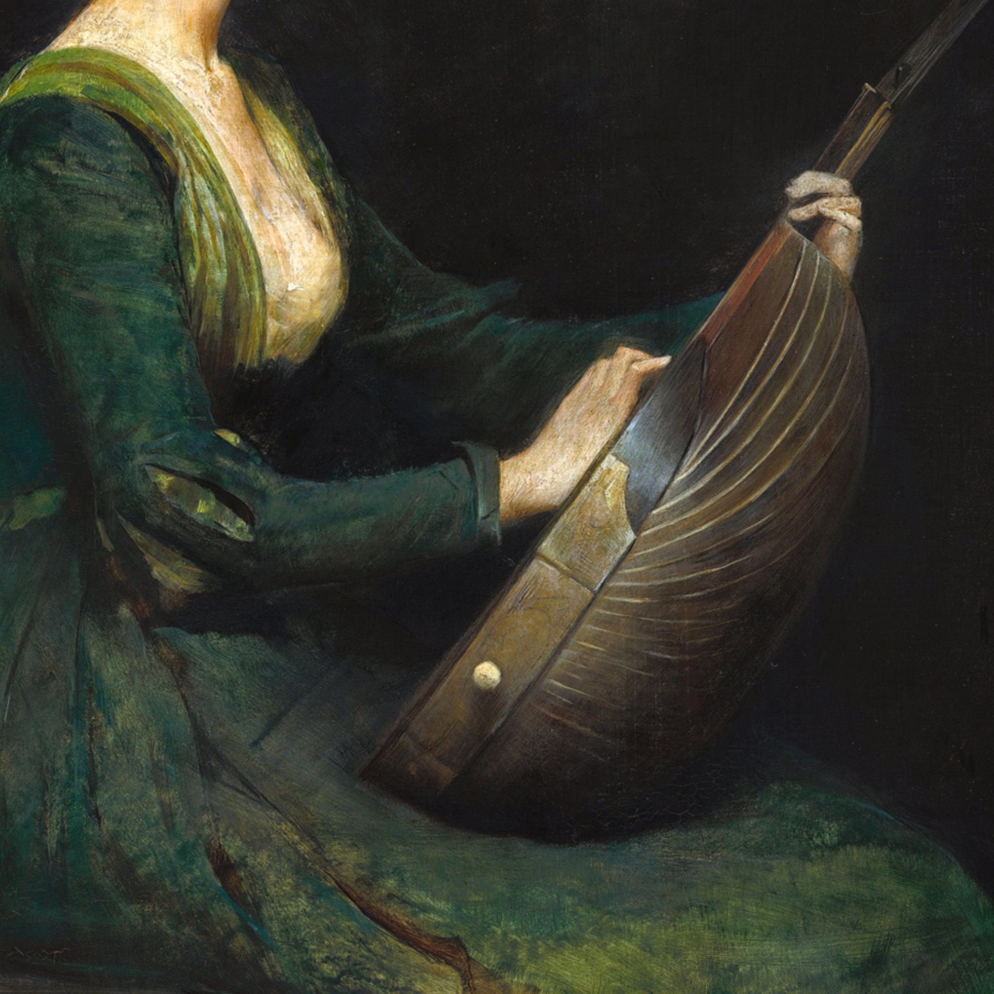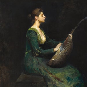 Pre-raphaelite Lady in Green With a Lute, Thomas Wilmer Dewing ...