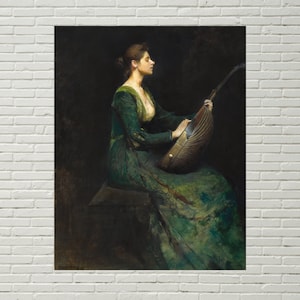 Pre-raphaelite Lady in Green With a Lute, High Quality Fine Art Print ...