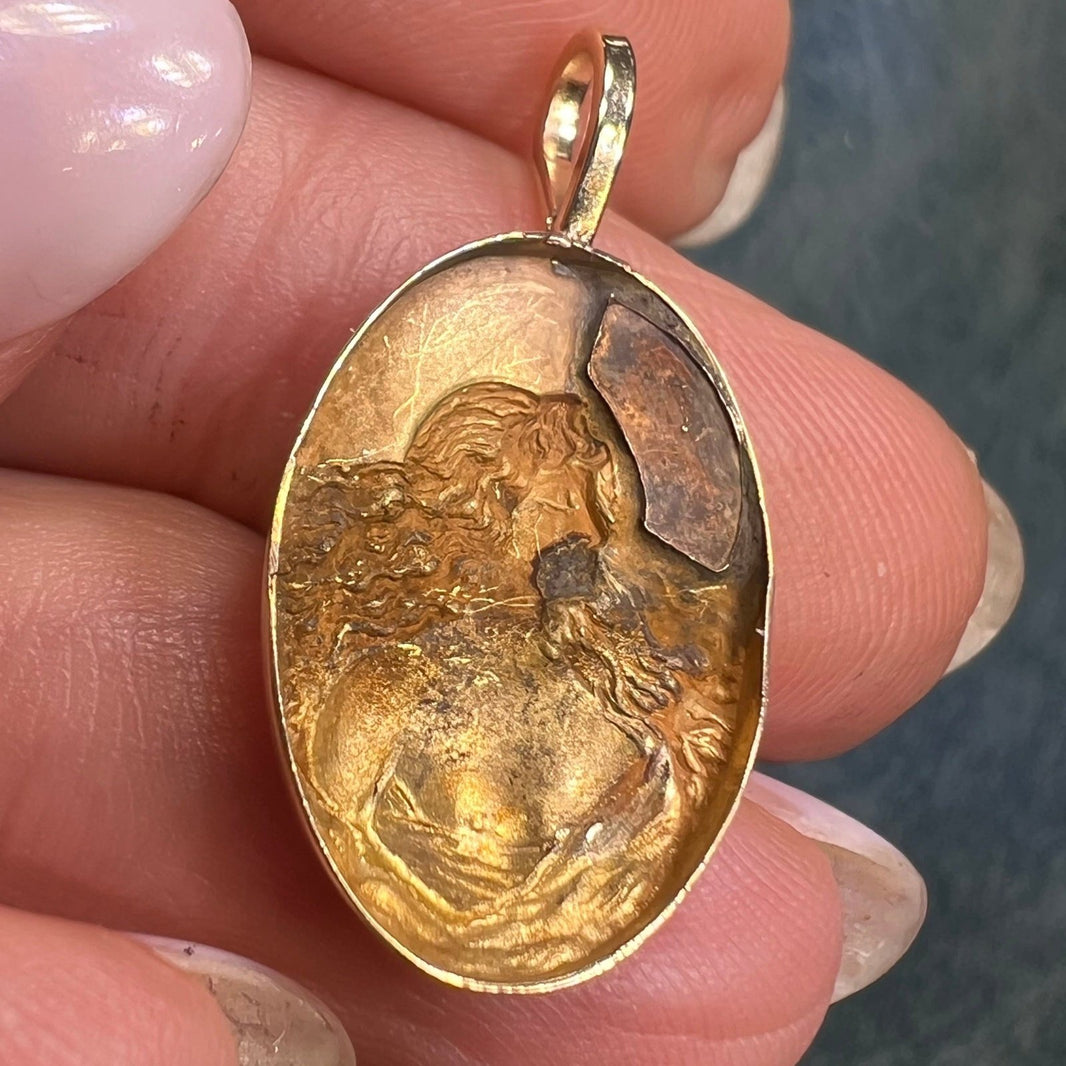 Victorian brass plaque of a Pre Raphaelite Maiden