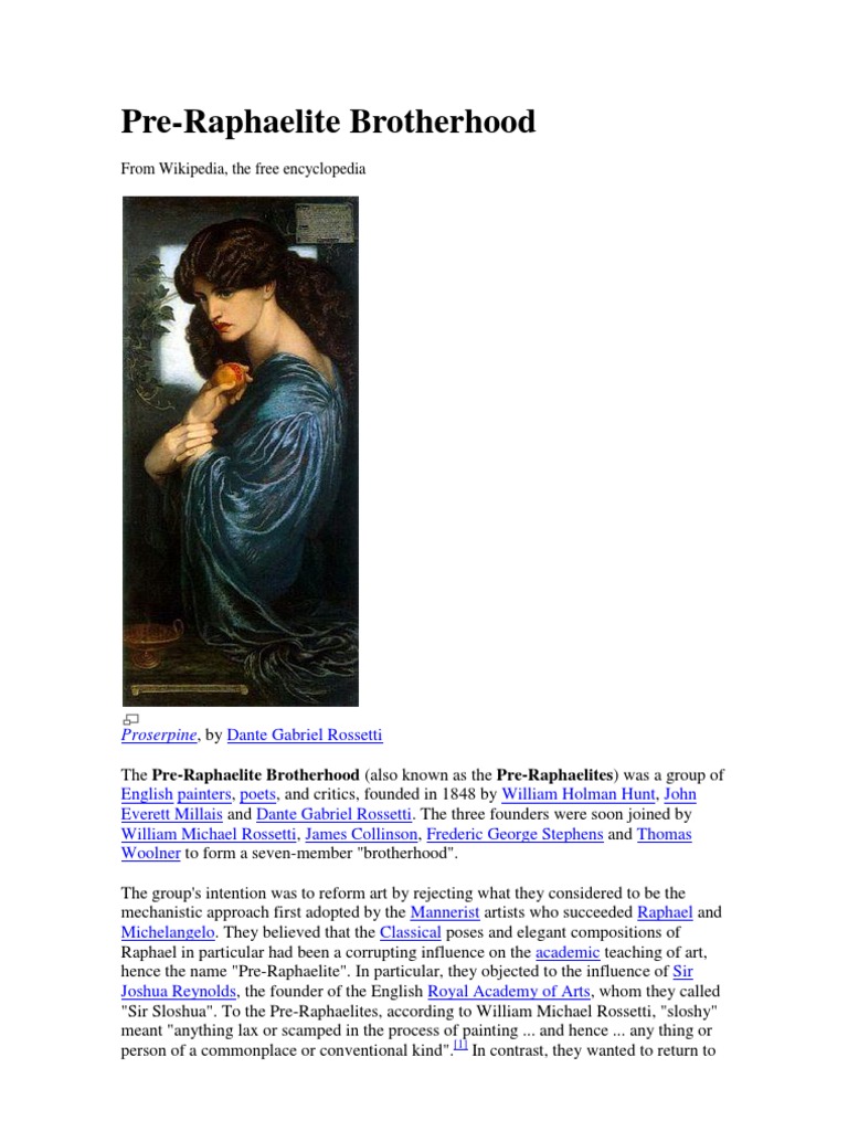 Pre-Raphaelite Brotherhood Overview | PDF | Pre Raphaelite Brotherhood ...
