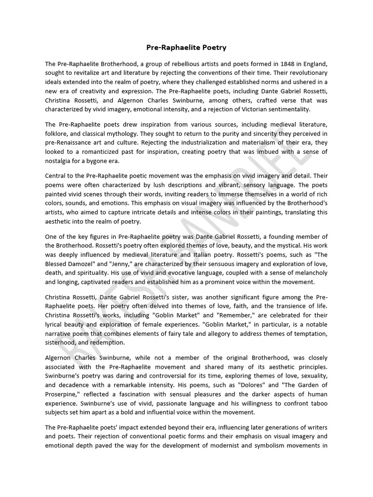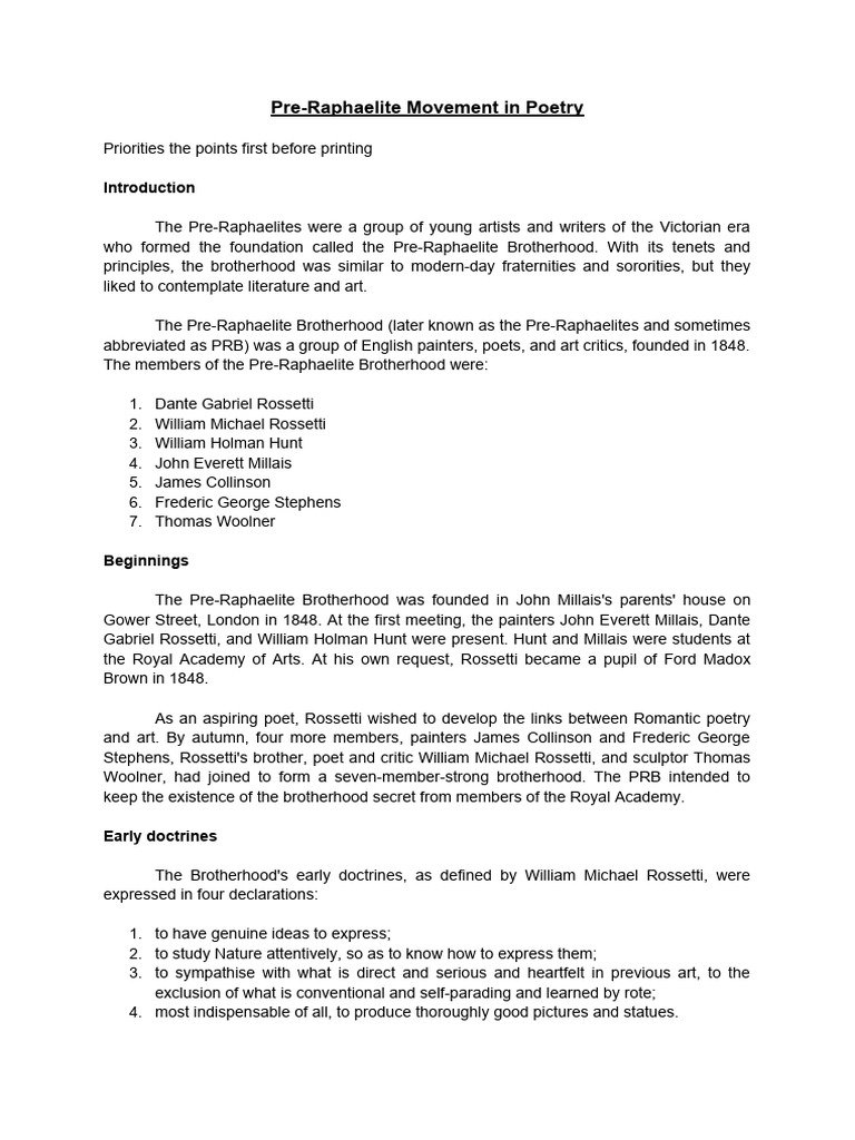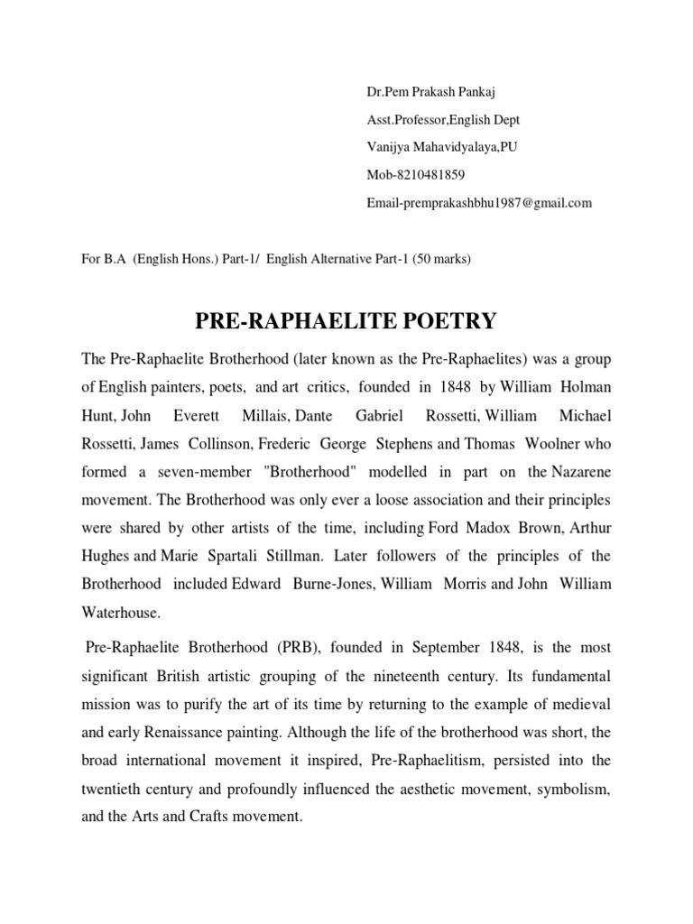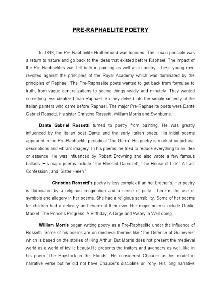 Pre-Raphaelite Movement in Poetry | PDF | Pre Raphaelite Brotherhood ...