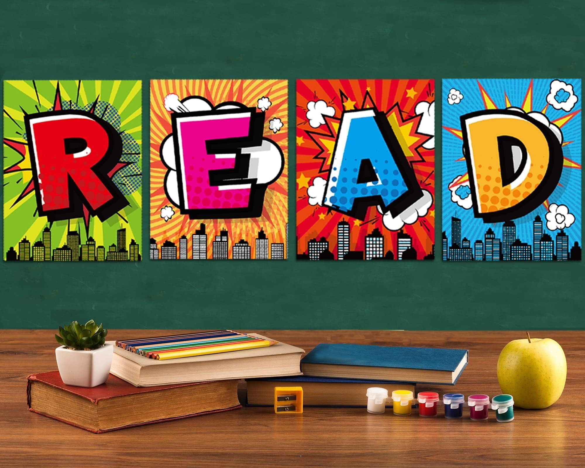 Amazon.com: Qilery 4 Pcs Reading Classroom Decorations Banner and ...