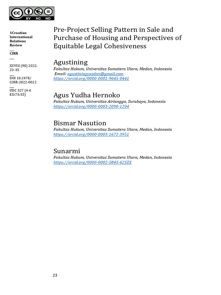 Pre-Project Selling Pattern in Sale and Purchase of Housing and ...