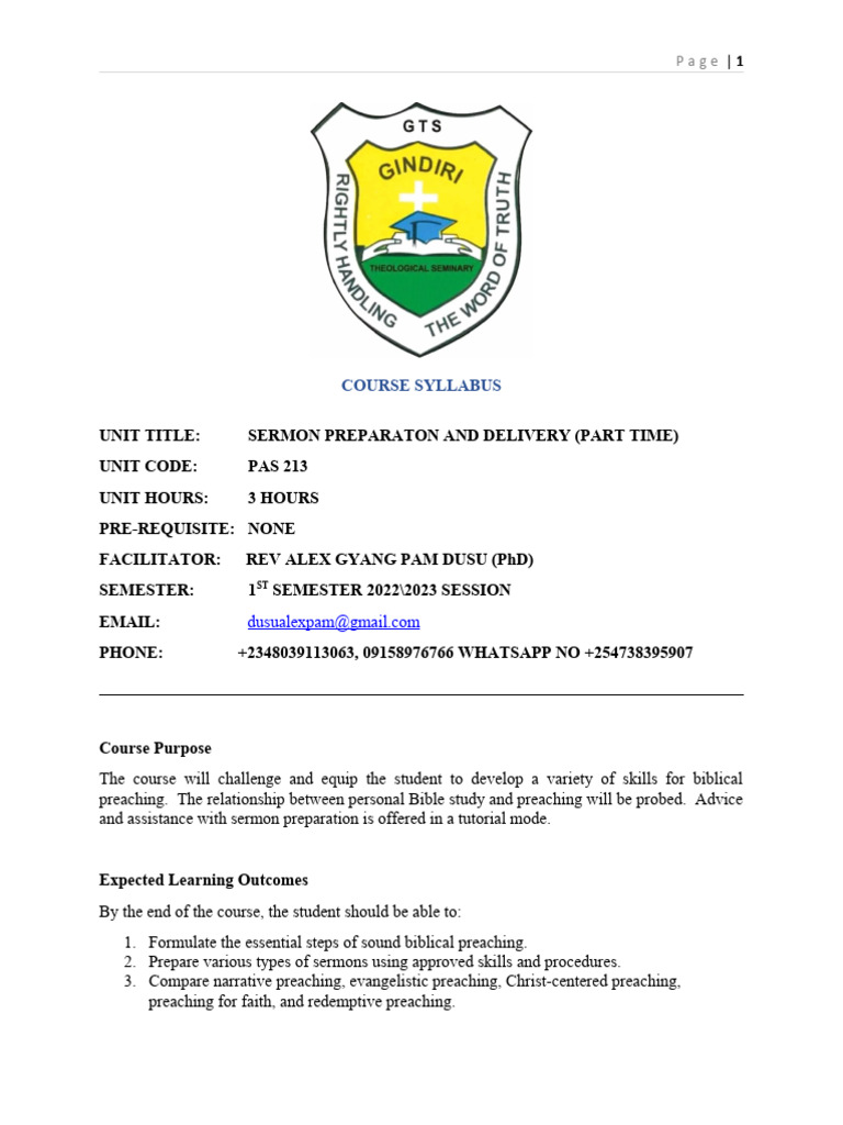 Sermon Preparation and Delivery Course | PDF | Expository Preaching ...