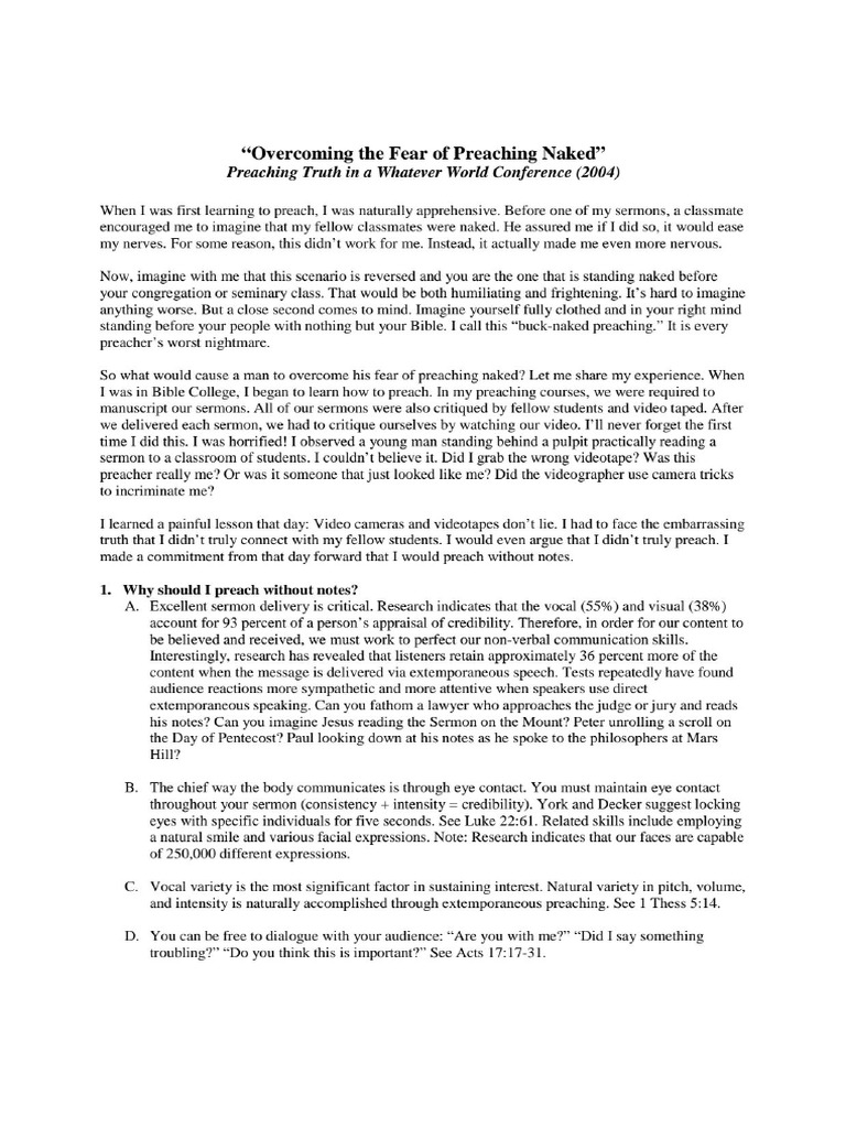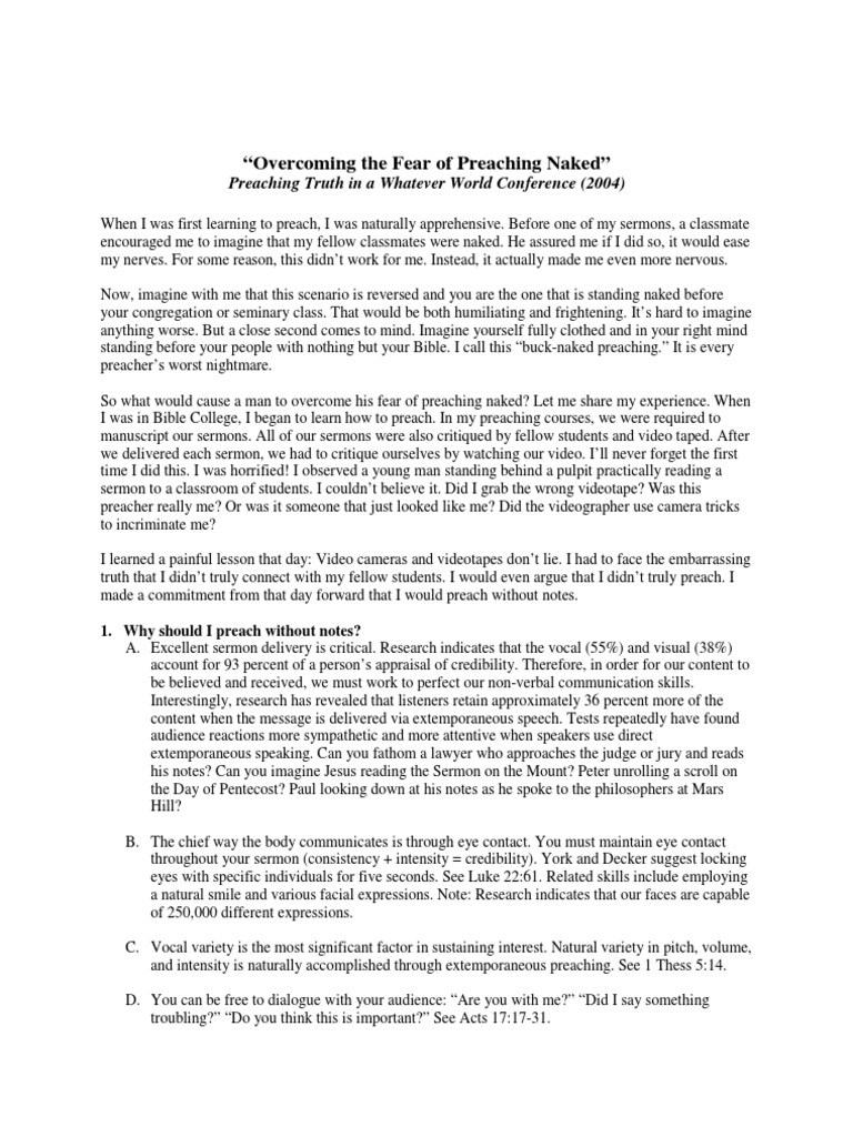 Preaching Without Notes - Overcoming The Fear of Preaching Naked" | PDF