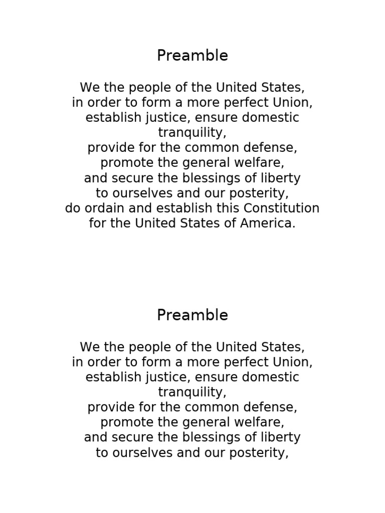 Free Printable Preamble To The Constitution Pdf