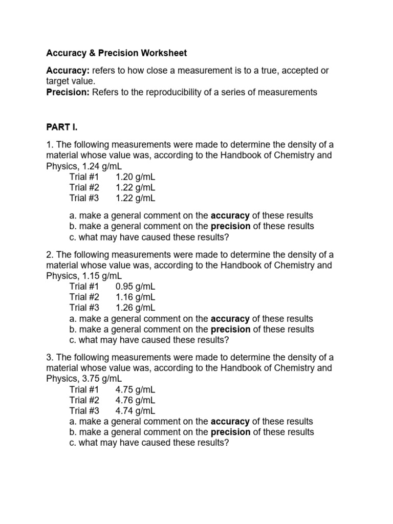 Free accuracy and precision worksheet, Download Free accuracy and ...