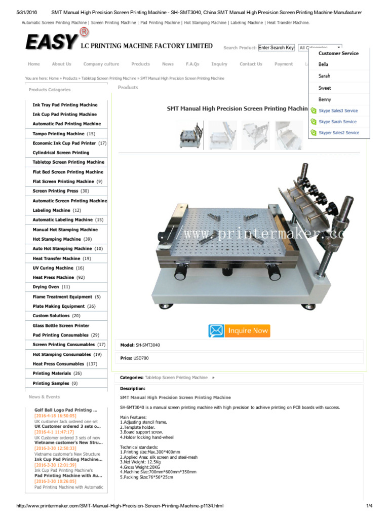 SMT Manual High Precision Screen Printing Machine - SH-SMT3040 - EASY ...