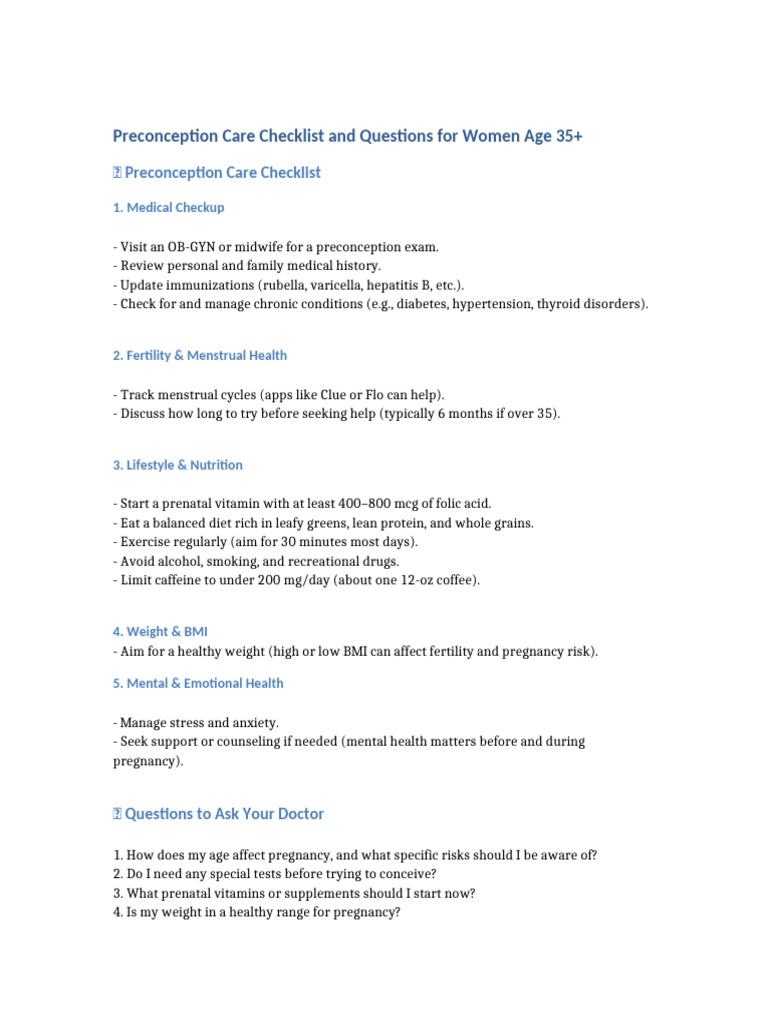 Checklist: Preconception Checkup Questions | Preconception, Checkup ...