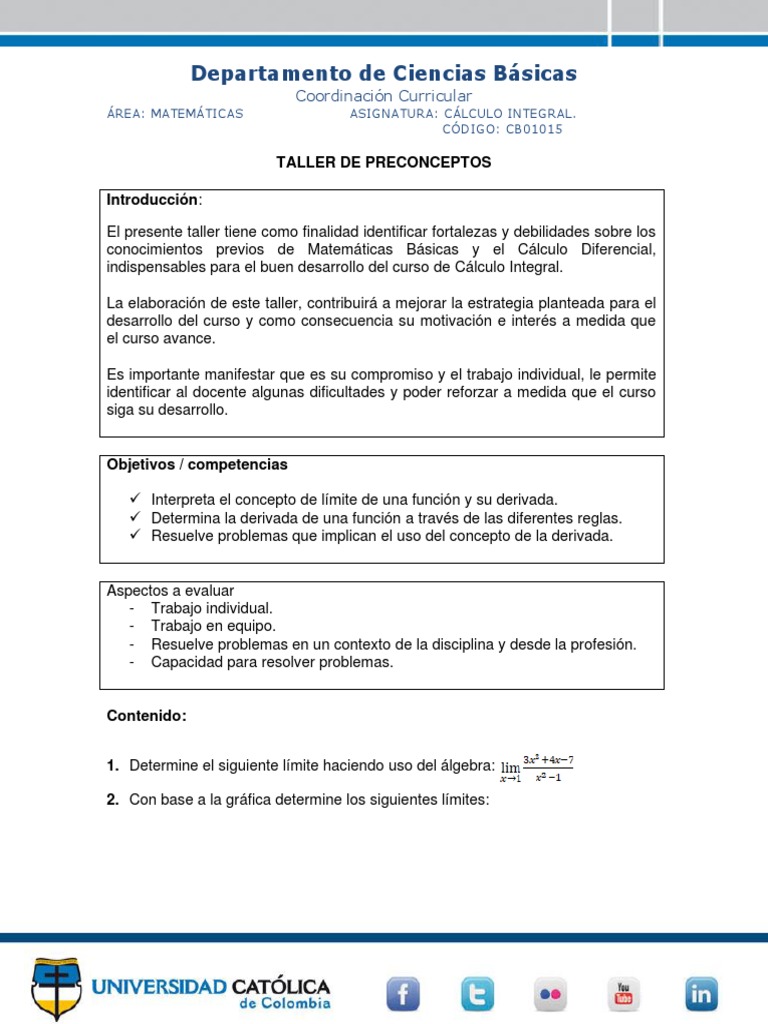Taller. Preconceptos CV | PDF | Integral | Análisis matemático