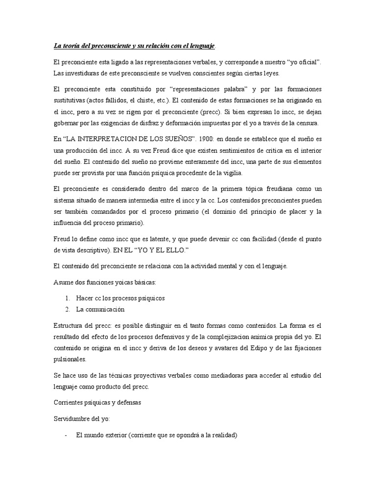 Teoría del Preconsciente y Lenguaje en Freud | PDF | Carné de identidad ...