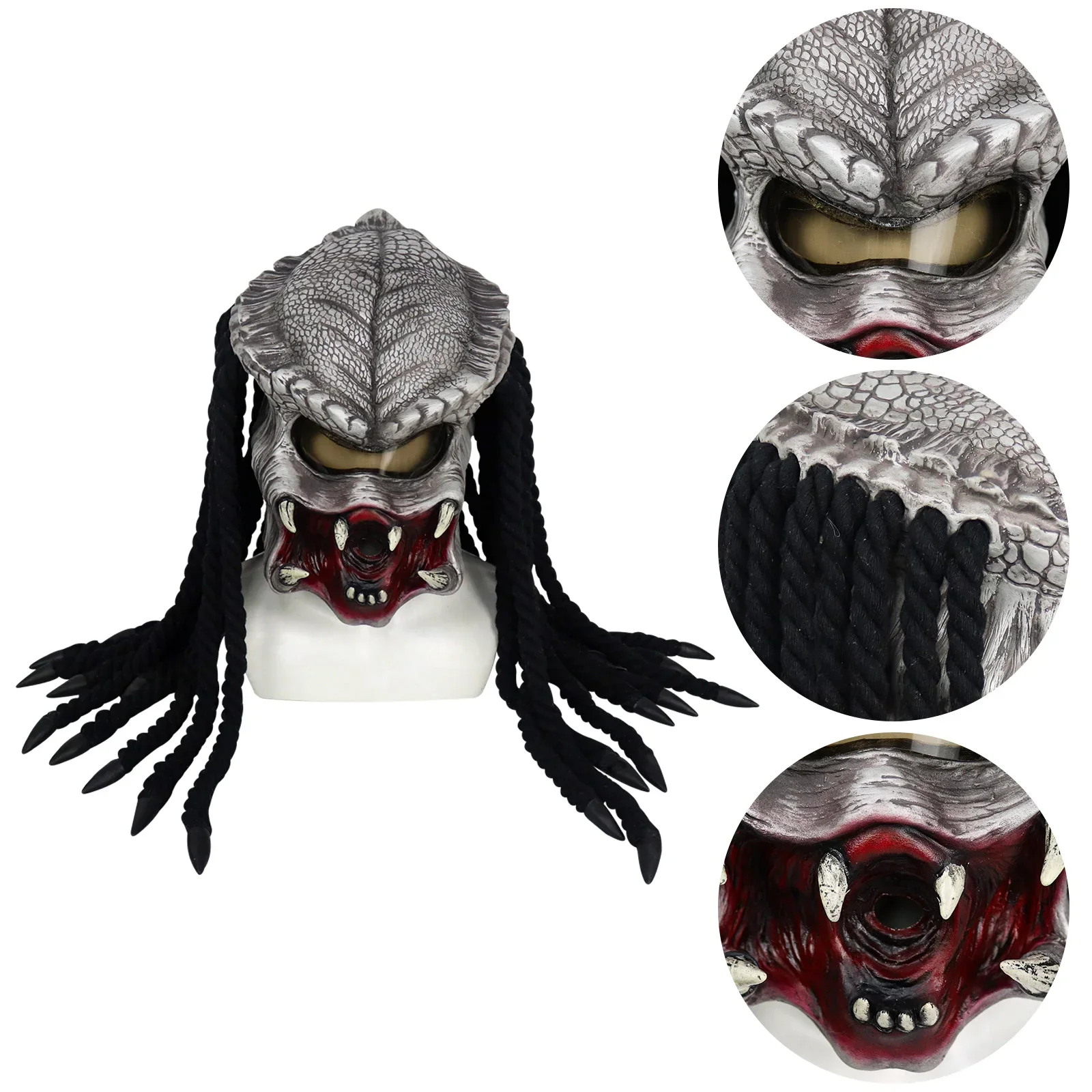 Predator Mask with Dreads Hair Scary Helmet Alien Mask Full Face Latex ...