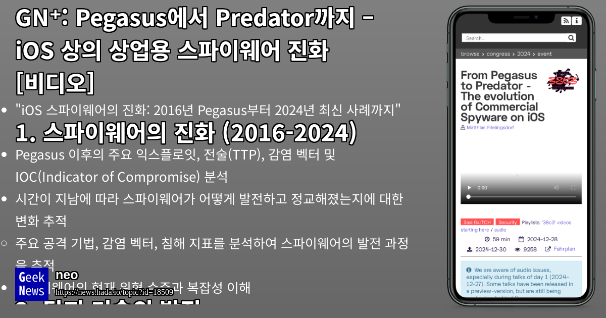 Pegasus에서 Predator까지 – iOS 상의 상업용 스파이웨어 진화 [비디오] | GeekNews