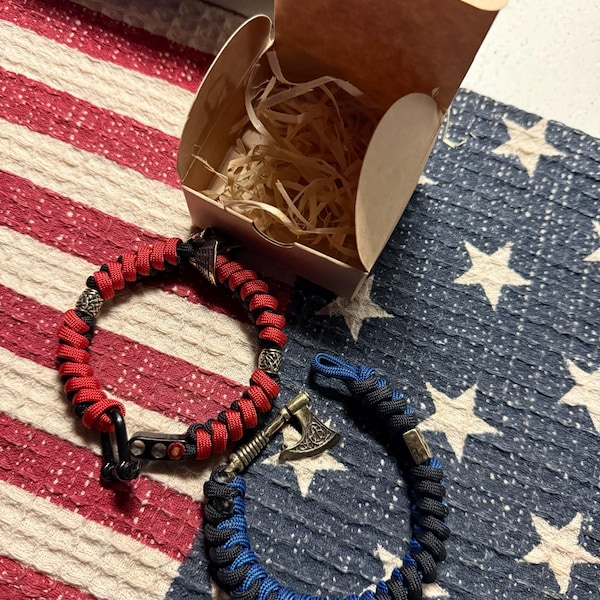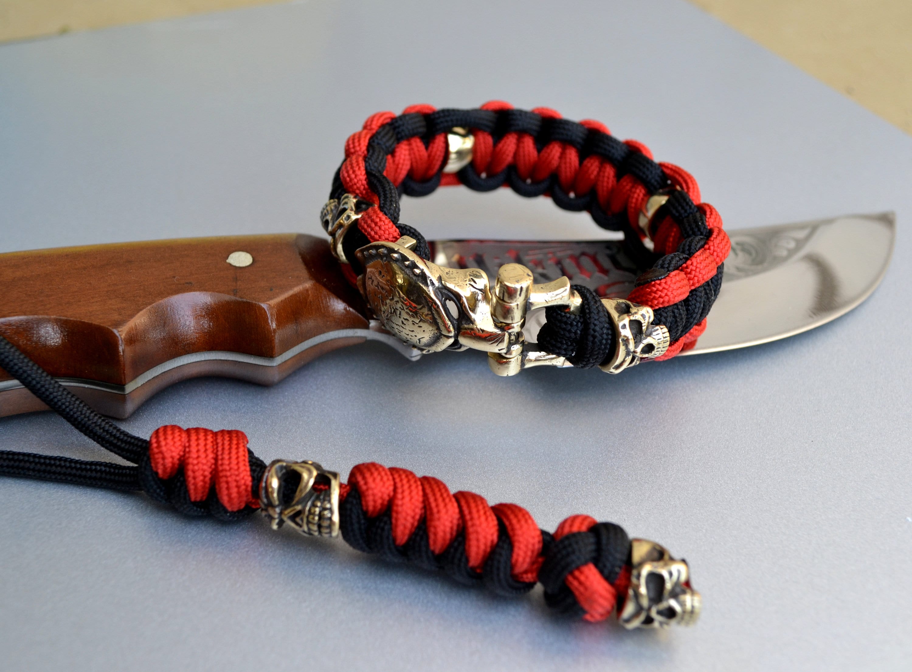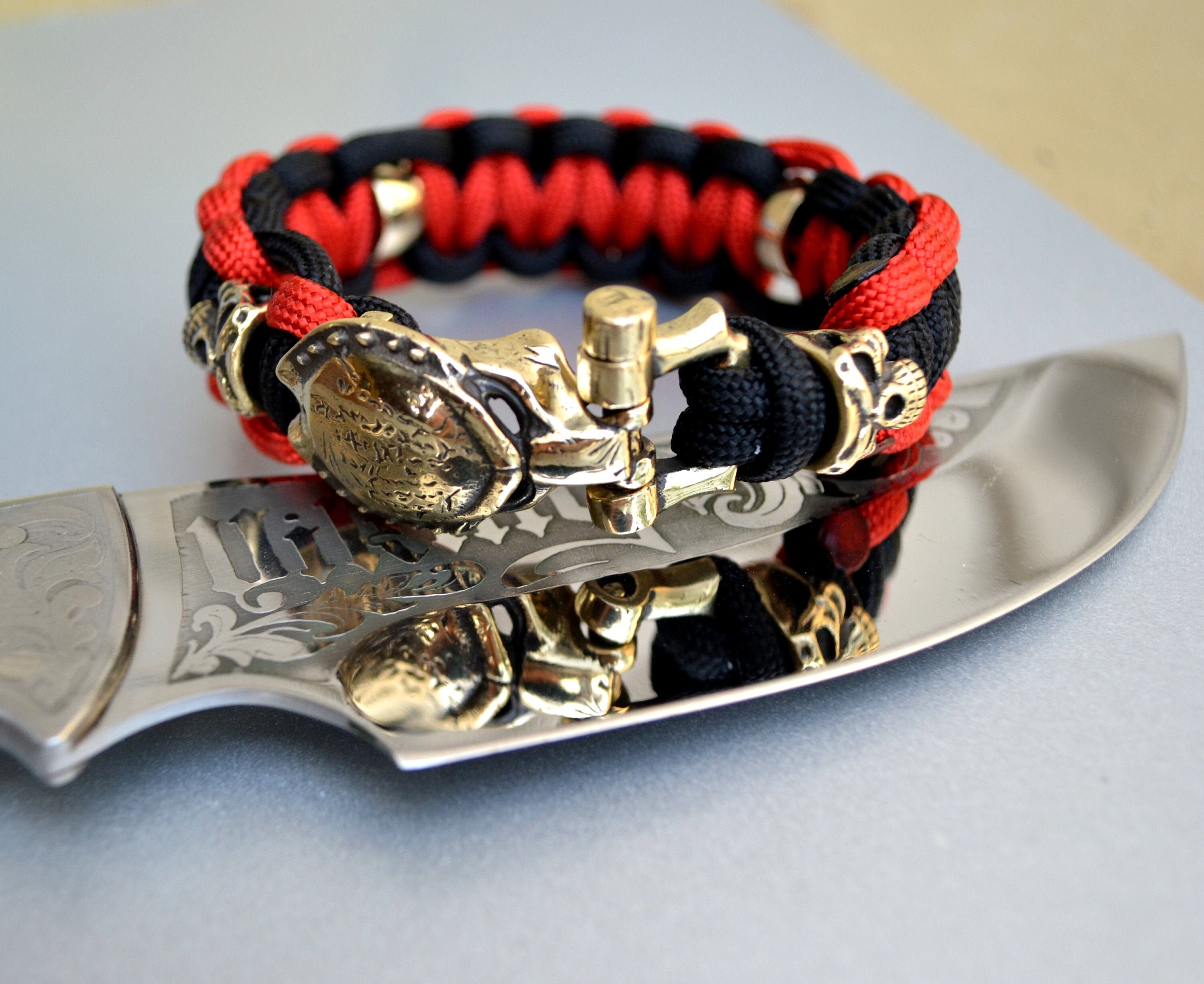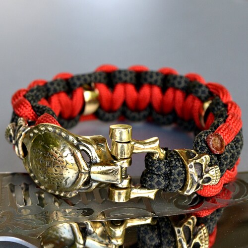 Paracord bracelet with Predator brass shackle valkyrie bead | Etsy