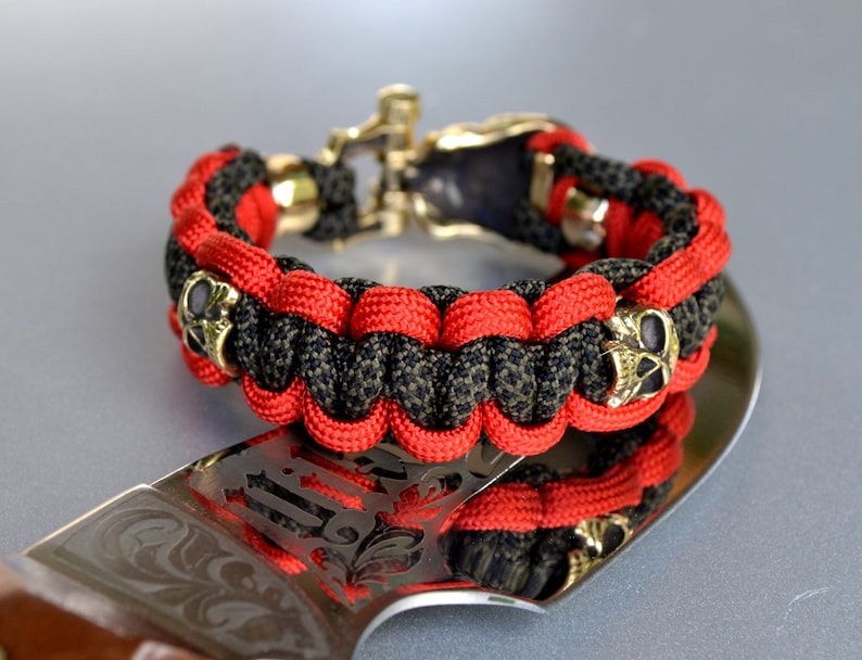 Paracord with Predator Black and red bracelet sculls | Etsy
