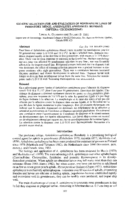 (PDF) Genetic Selection for and Evaluation of Nondiapause Lines of ...