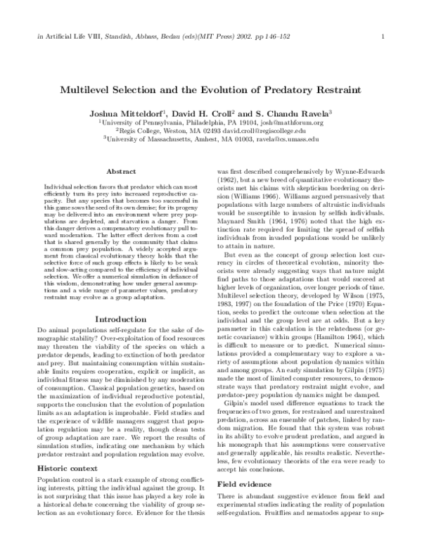 (PDF) Multilevel Selection and the Evolution of Predatory Restraint ...