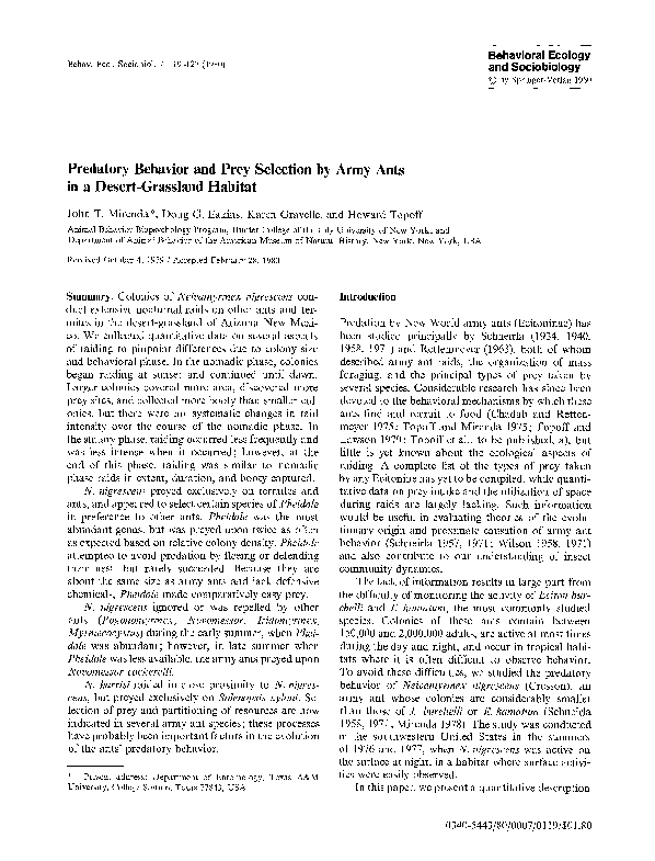 (PDF) Predatory behavior and prey selection by army ants in a desert ...