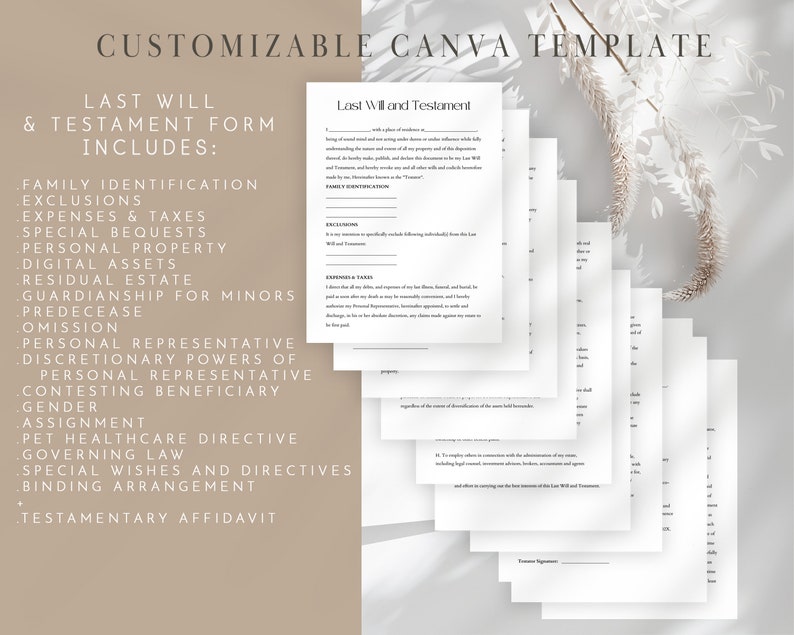 Editable Last Will and Testament Template Legal Document Estate ...