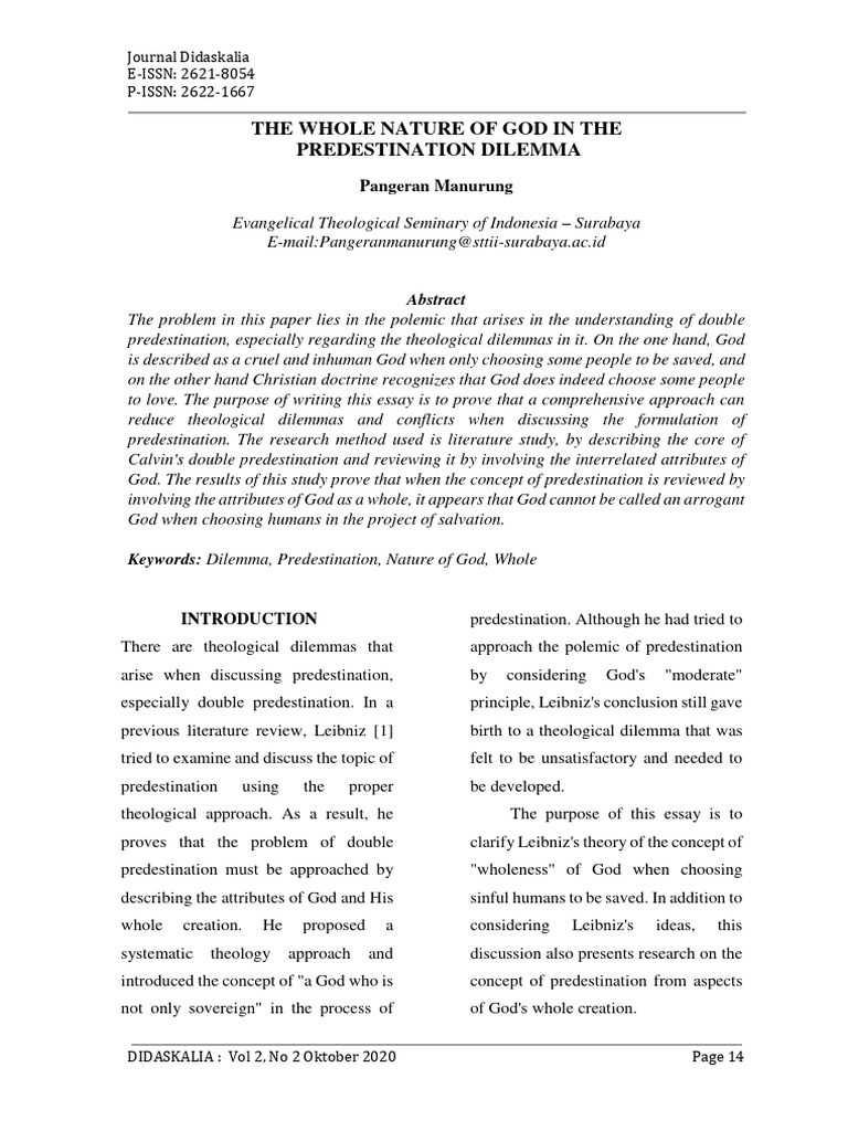 The Whole Nature of God in The Predestin | PDF | Predestination | Grace ...