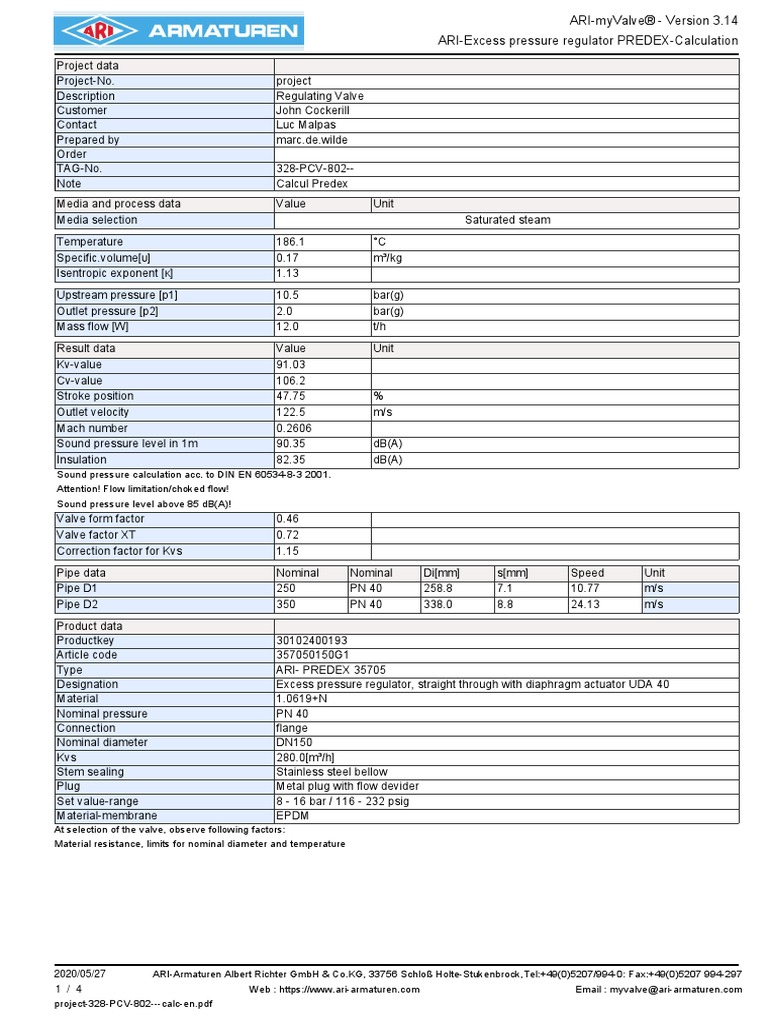 Predex 12 T P2 2bar - 328-PCV-802 - Calc-En | PDF | Valve | Plumbing