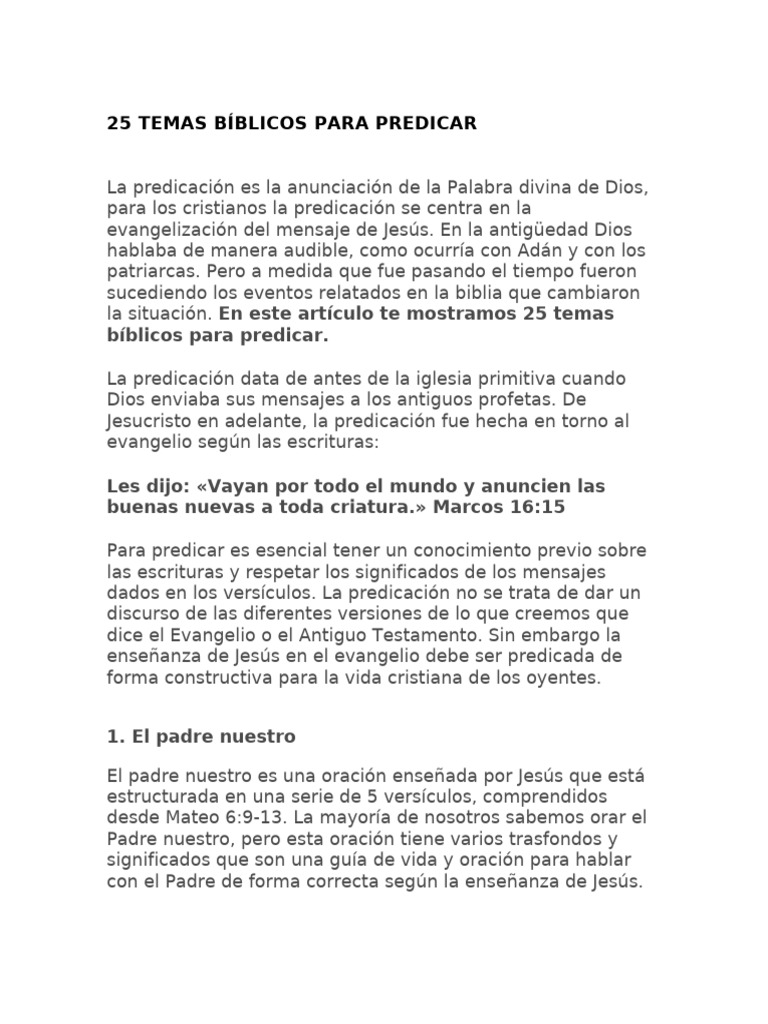 25 Temas Bíblicos para Predicar | PDF | orador del Señor | Jesús