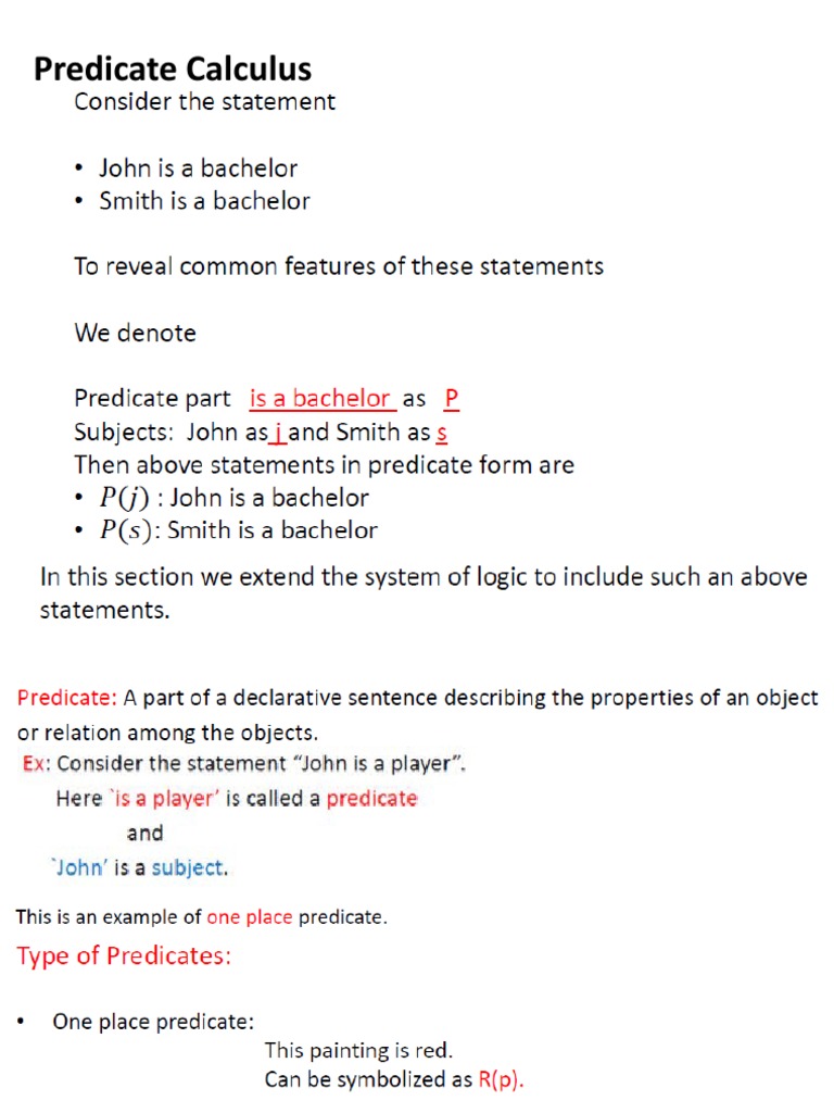 Section 7 1 FirstOrder Predicate Calculus Predicate calculus