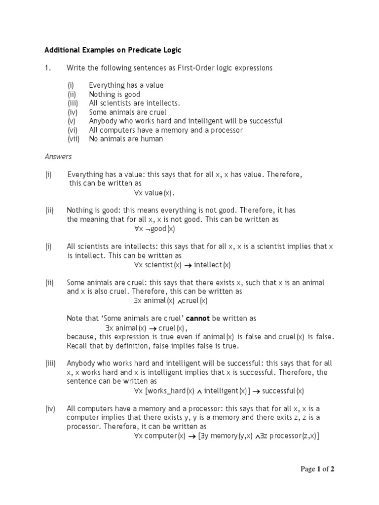 Additional Examples on Predicate Logic | PDF | First Order Logic ...