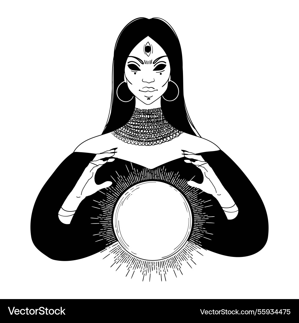 The Oracle Girl Predicts The Future On A Magic Ball Vector Illustration ...