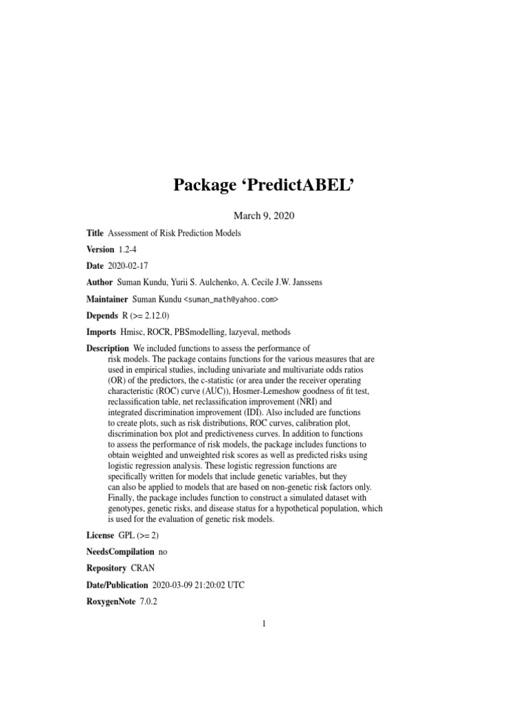 Package Predictabel': March 9, 2020 | PDF | Logistic Regression ...