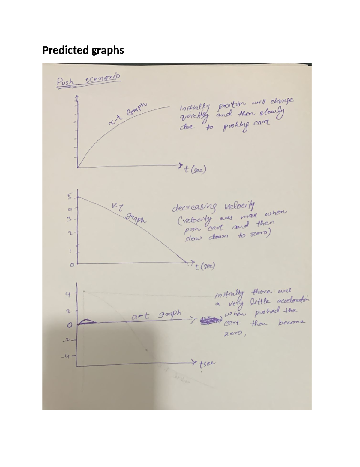 Position, Velocity and Acceleration lab worksheet - Predicted graphs ...