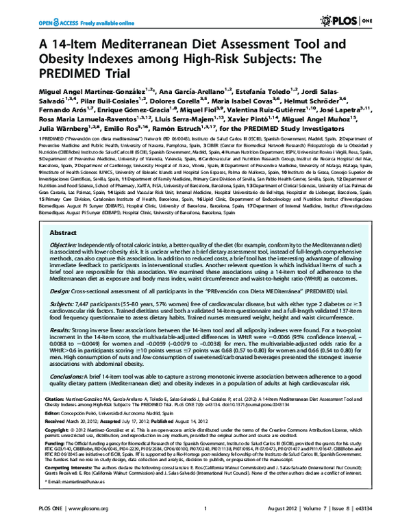 (PDF) A 14-Item Mediterranean Diet Assessment Tool and Obesity Indexes ...